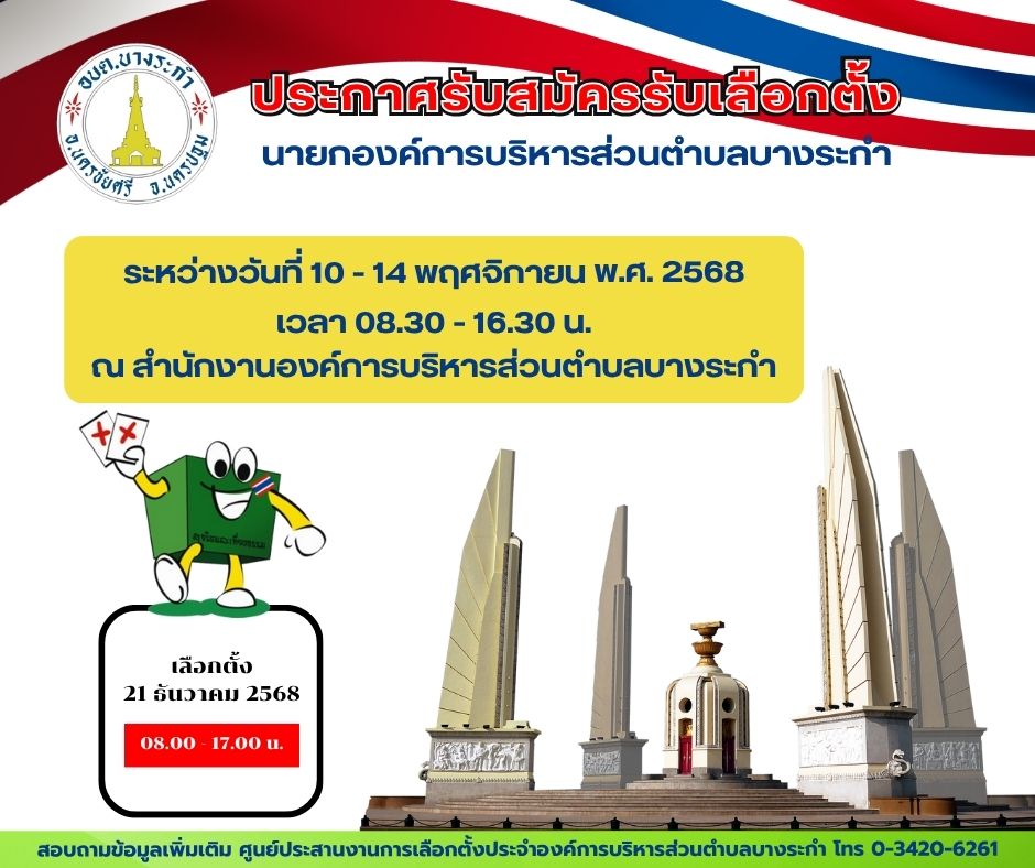 องค์การบริหารส่วนตำบลบางระกำ อำเภอนครชัยศรี จังหวัดนครปฐม โทร. 0-3420-6261 โทรสาร 0-3420-6925